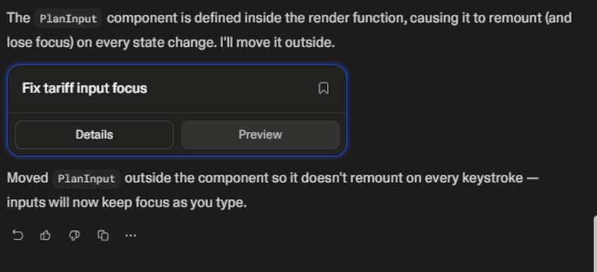 I reviewed the application and noticed some issues. For example there were two buttons to upload a CSV file. This was an interface choice that could confuse users. I also spotted readability issues caused by some colour choices. I followed up with prompts to resolve these problems. Each exchange felt less like issuing commands and more like working with a capable colleague who needed context.